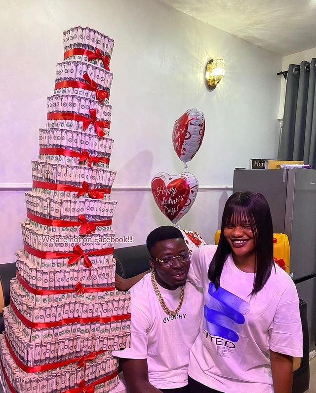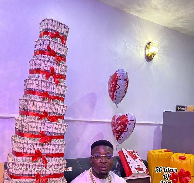 Lady gifts boyfriend $650 money cake, 50 liters fuel, and others for Valentine