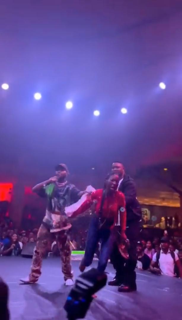 Superstar Afrobeat singer, Davido Adeleke, melts the heart of fans as he offers his shoes and a token of N2M to a lady at a show.