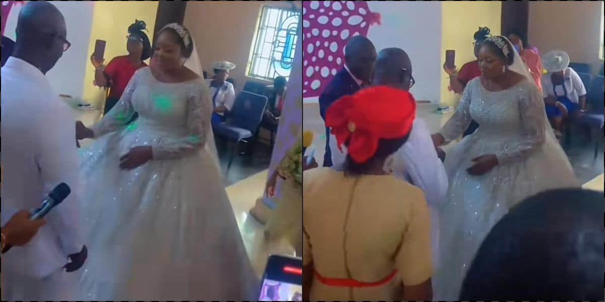 In the video, the bride wore a shiny white dress as she marched towards the pulpit to be joined in holy matrimony to her new partner.
