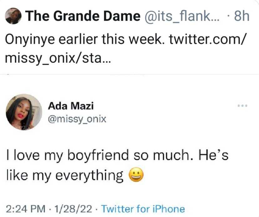 Her statement stunned Twitter users, who wondered whether she didn’t have a boyfriend.