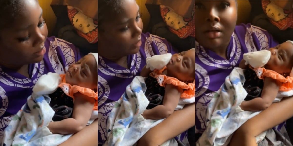 Lady in awe as friend’s newborn baby yawns and covers her mouth herself, video stirs reactions