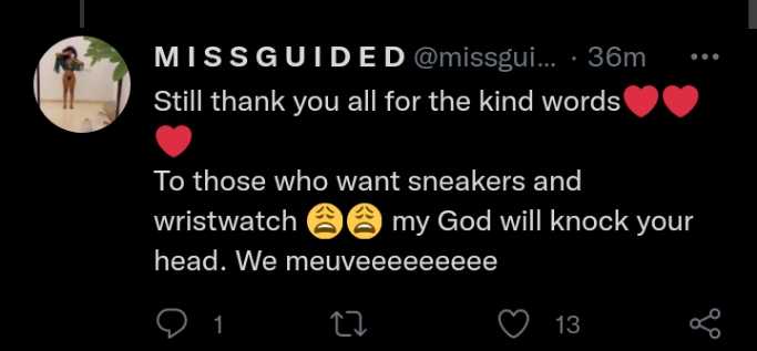 According to the lady, she had done the necessary preparations for the event to please the guy, from fixing her nails to spending close to N40,000 to get his favorite sneakers, but was given the shock of her life after the said boyfriend posted a photo of himself with his acclaimed Baby mama.
