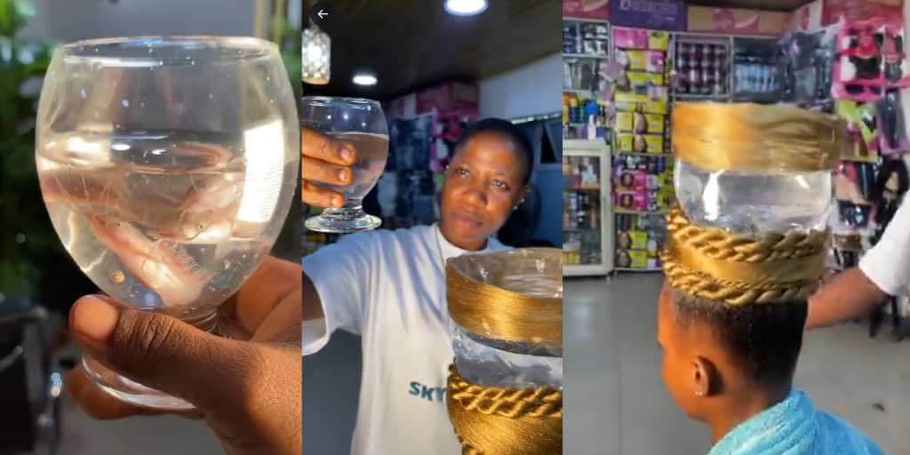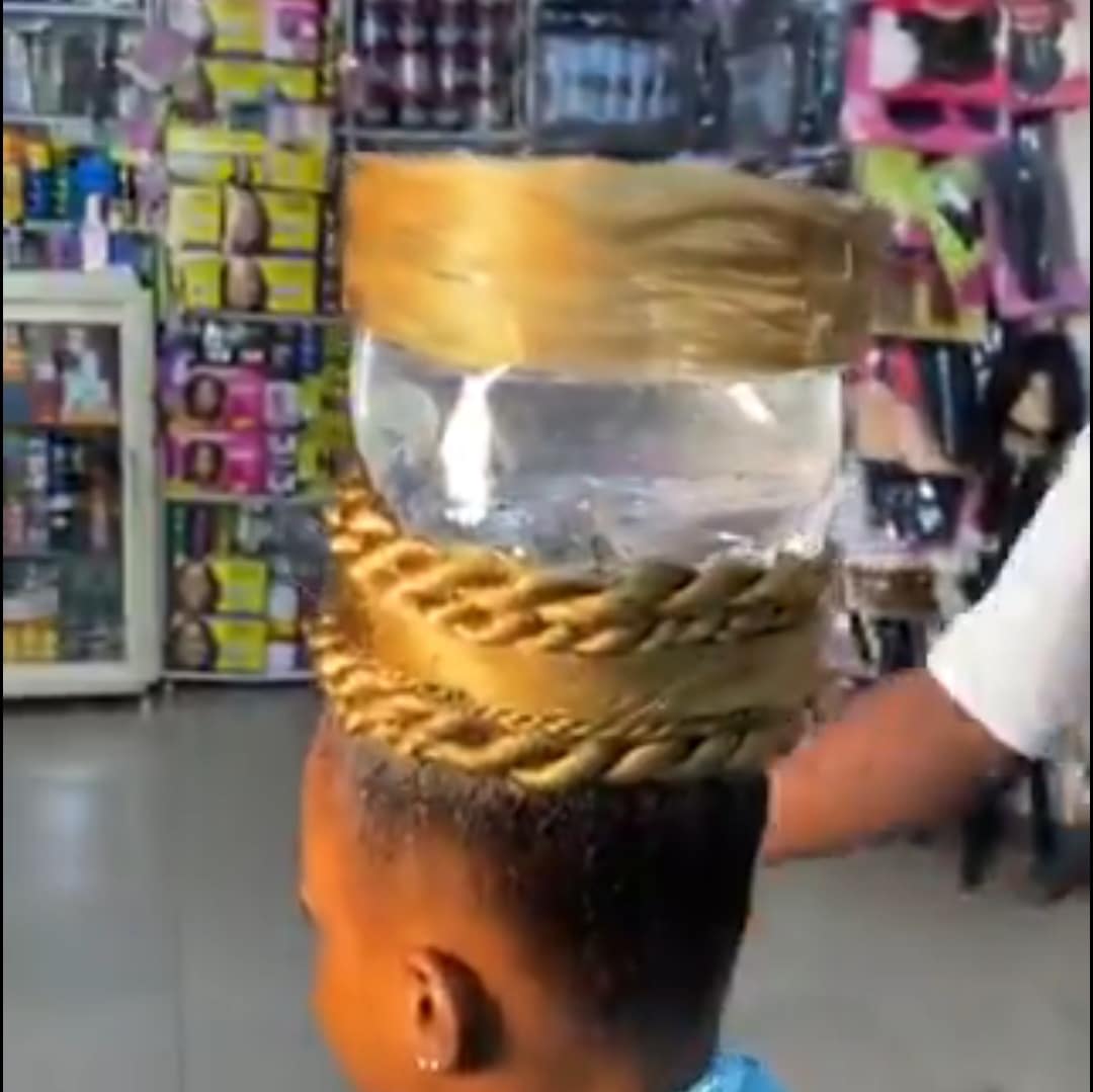 A Nigerian lady has introduced a unique hairstyle featuring a fish pond embedded in her hair, complete with water effect, and she’s slaying it.