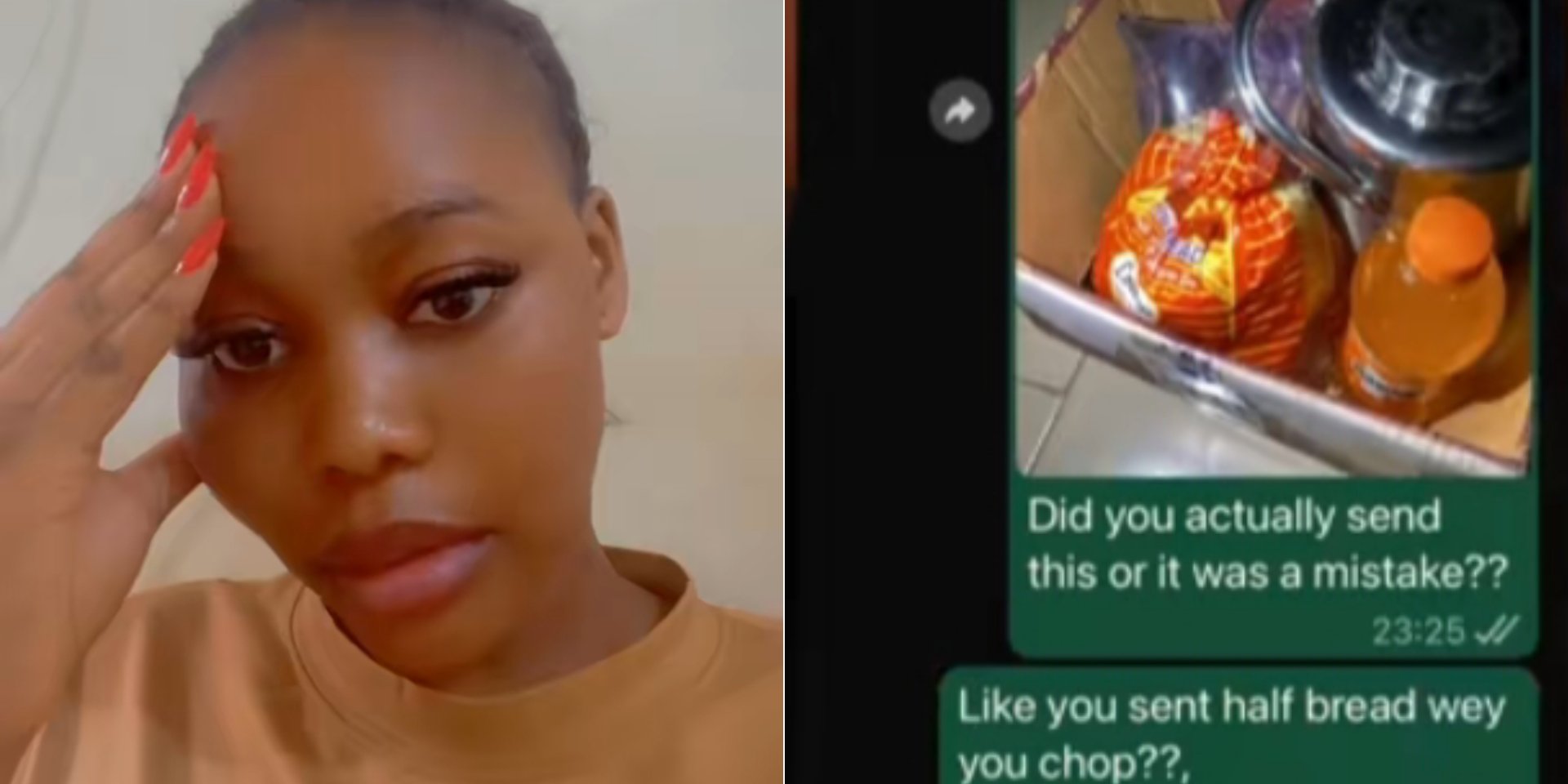 Lady laments as boyfriend sends her food package with half bread, cooked beans, pure water, and Fanta
