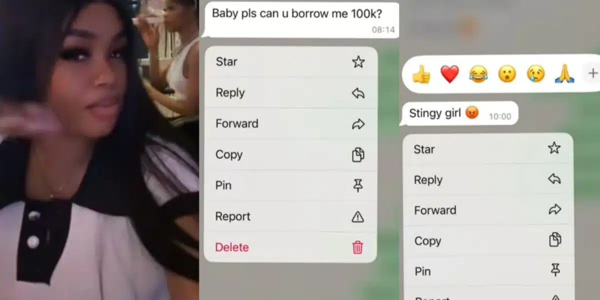 A lady has leaked her chat with a man who blasted her after she refused to give him the N100K he begged for.
