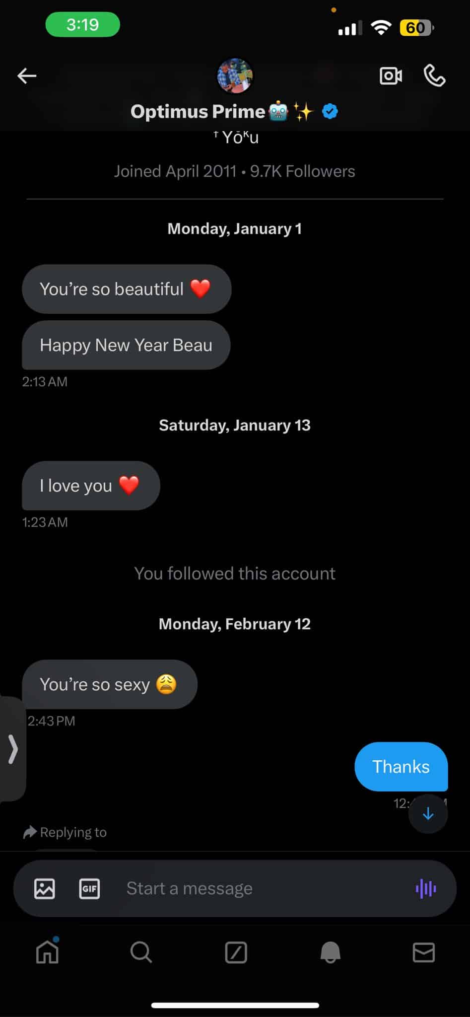 The chats showed the man expressing how much he loves her and her body, giving her detailed information about himself and places he’s lived.