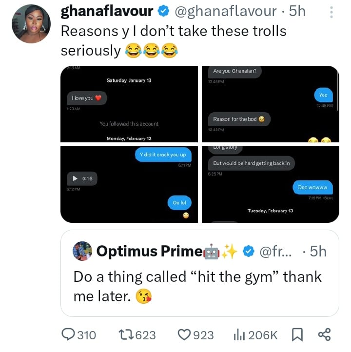 Ghanaian lady exposes Nigerian man who publicly tried to body shame her but has been in her DM wooing her.