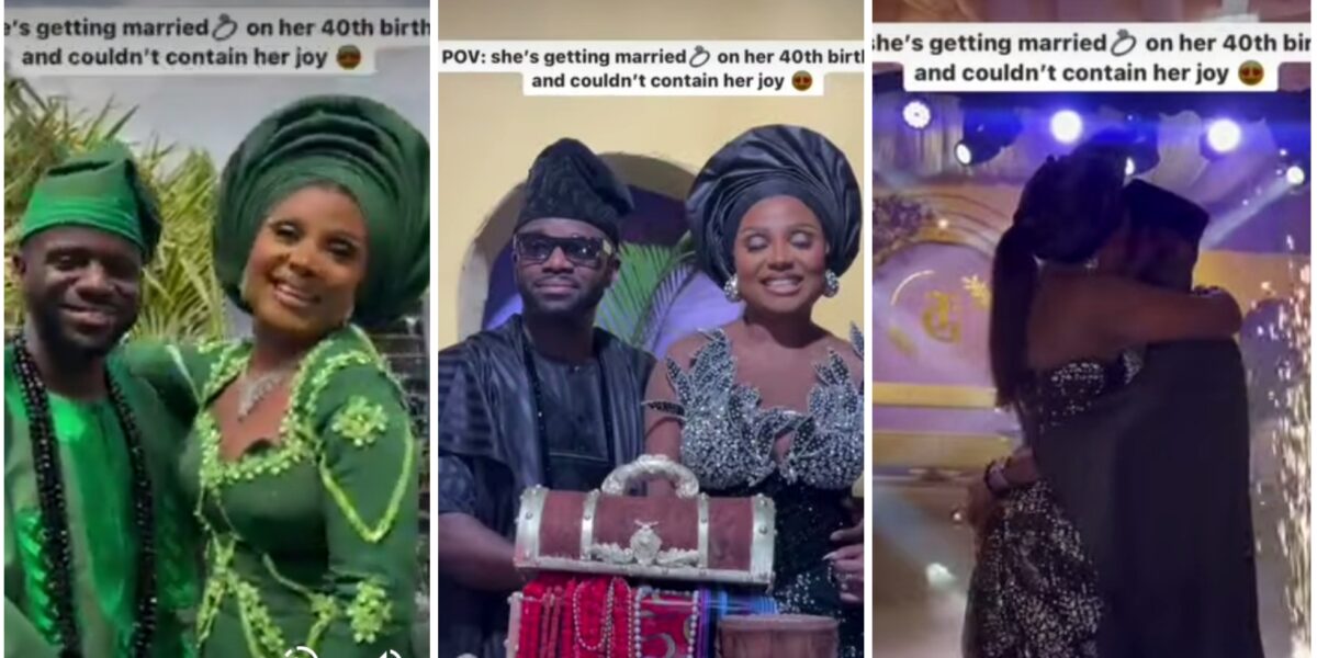 A video has emerged online, capturing a lady’s reaction to getting married on her 40th birthday, sparking reactions online.