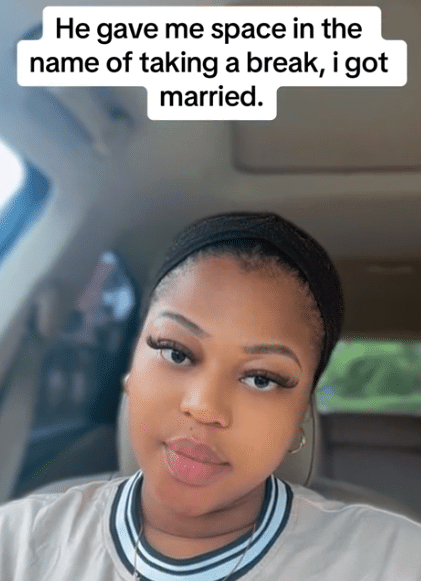 “He gave me space in the name of taking a break. I got married,” the lady’s video caption read.