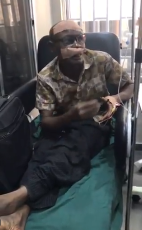 The victim who seems to be in his late 50s survived the accident which left him with a head injury, after being rushed to the hospital.