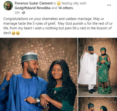 She shared photos of the ex boyfriend and cursed his marriage, wishing him misery and grief rather than the happiness of marriage.