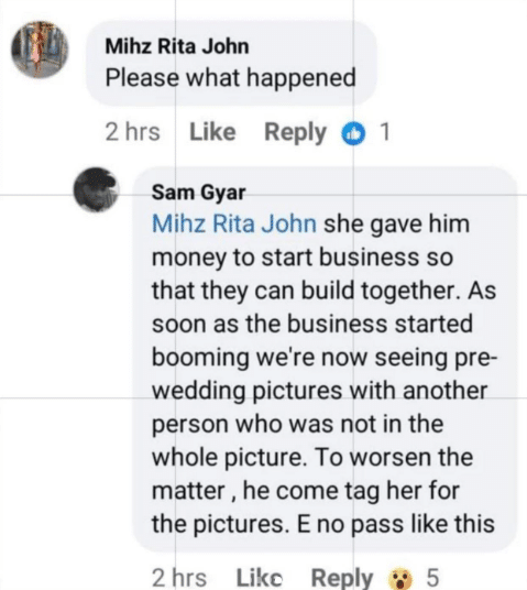 It was gathered that their relationship hadn’t ended on a positive note. Some netizens shared that the lady had allegedly given him money to start a business together only for him to engage another lady.