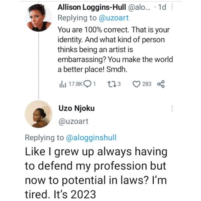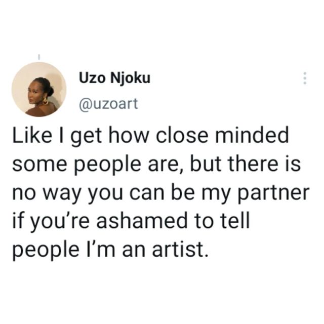 According to her, she grew up having to defend her profession and that there’s no way she’d be with a partner who is ashamed to tell people that she does art for a living.