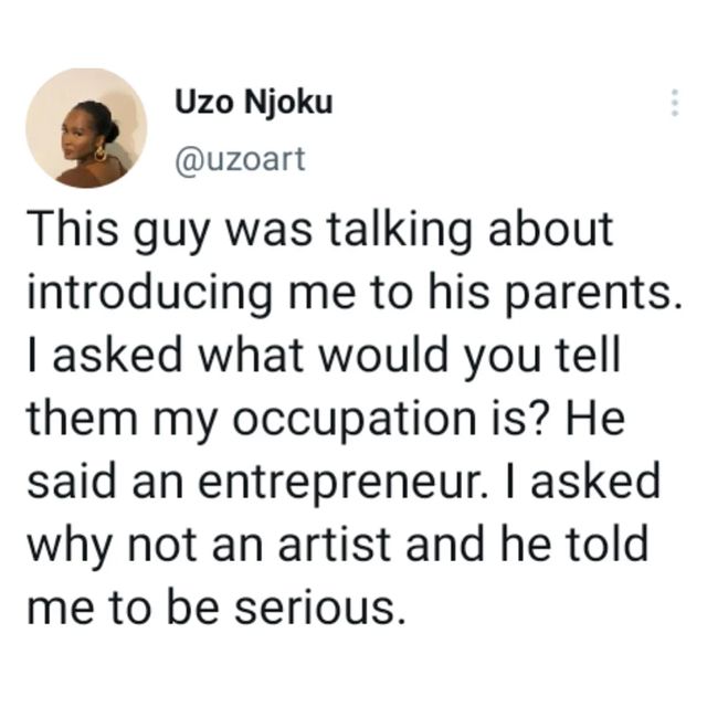 A US-based Nigerian lady considers leaving her relationship with boyfriend because he is ashamed to tell his parents that she’s an artist by profession.
