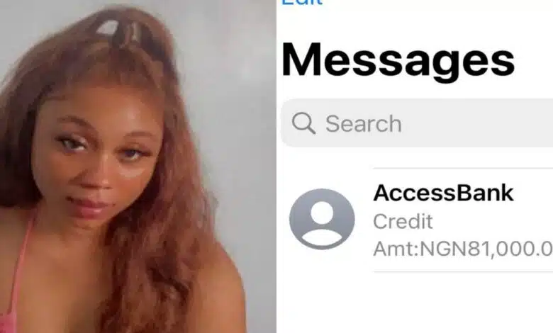 A young Nigerian lady has revealed that she received an alert of 81,000 naira from a stranger who admired her beauty.