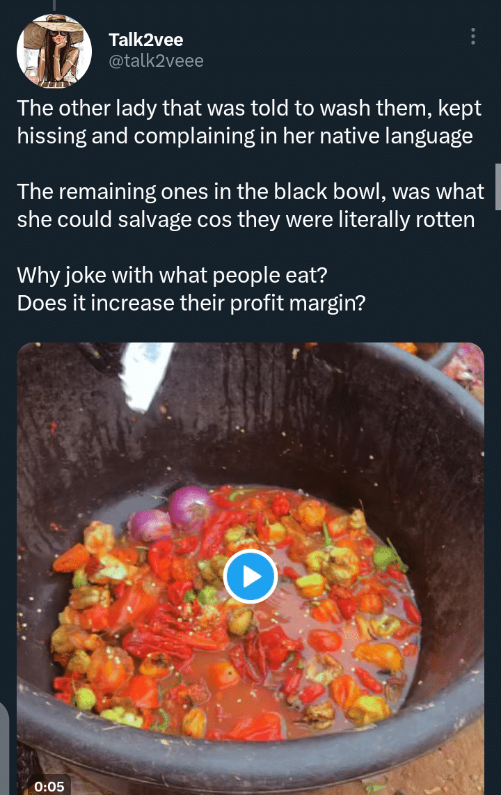 Lady recounts experience at restaurant where food is made with rotten pepper