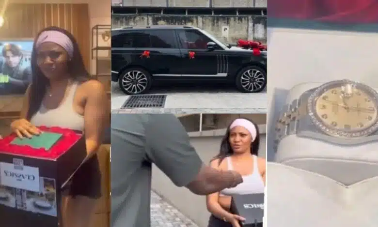 Holding the box of watch and getting down, she saw a black Range Rover SUV and was told who had got her all the mouthwatering gifts.