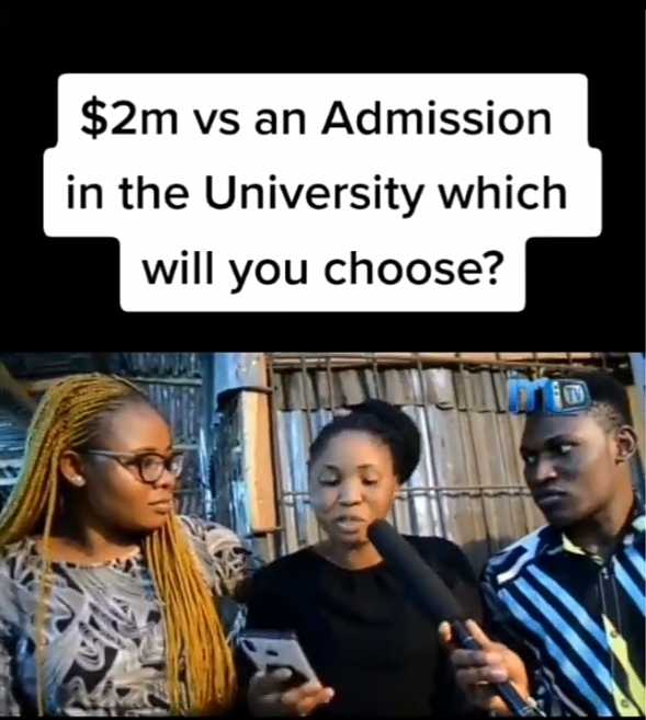 A young lady has revealed in an interview that she’d never forfeit school admission even if she’s offered the whooping sum of 2 million dollars.