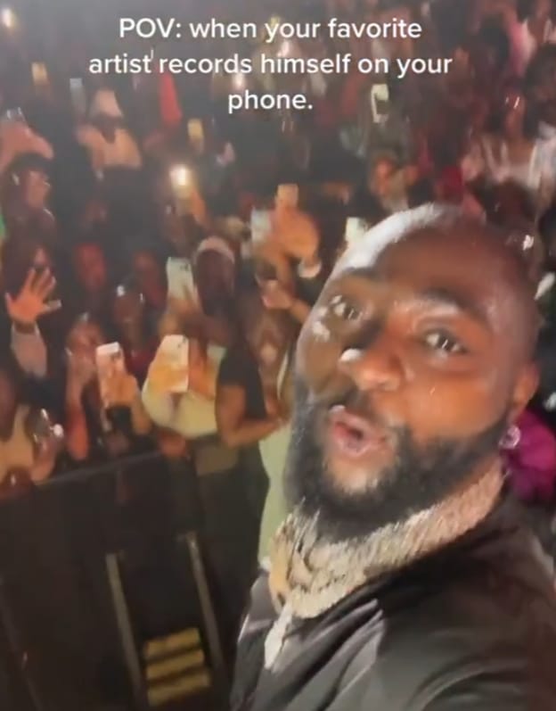 Lady screams as Davido collects her phone during concert, records himself with it (Video)