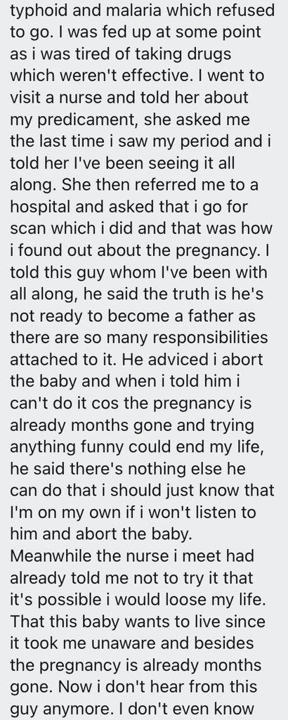 Hence the man who is supposed to take responsibility for the child has fled, the lady is confused about whether to keep or abort the child.