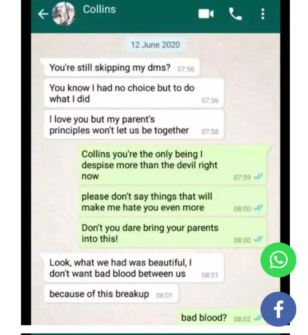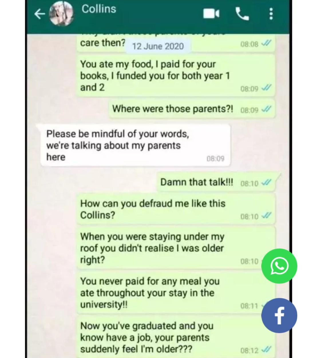 According to the leaked conversation, the young lady sponsored him in University for two years, paid for his handouts and even fed him.