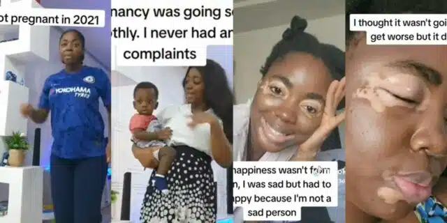 The lady revealed that she got pregnant with her first child in 2021 and showed a video from that year which showed her looking pretty and her skin tone was chocolate without blotches.