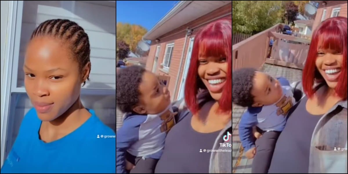Lady shares little son’s reaction to seeing her in wig after getting used to her all-back hairstyle