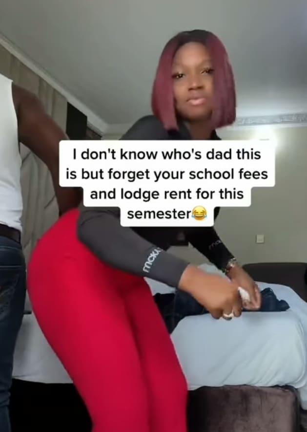 “I don’t know whose dad this is but forget your school fees and lodge rent for this semester,” she captioned.
