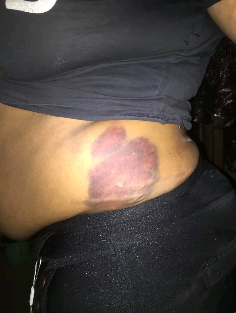Sharing photos of her body after the assault, the lady pleaded with Nigerians to come to her rescue.