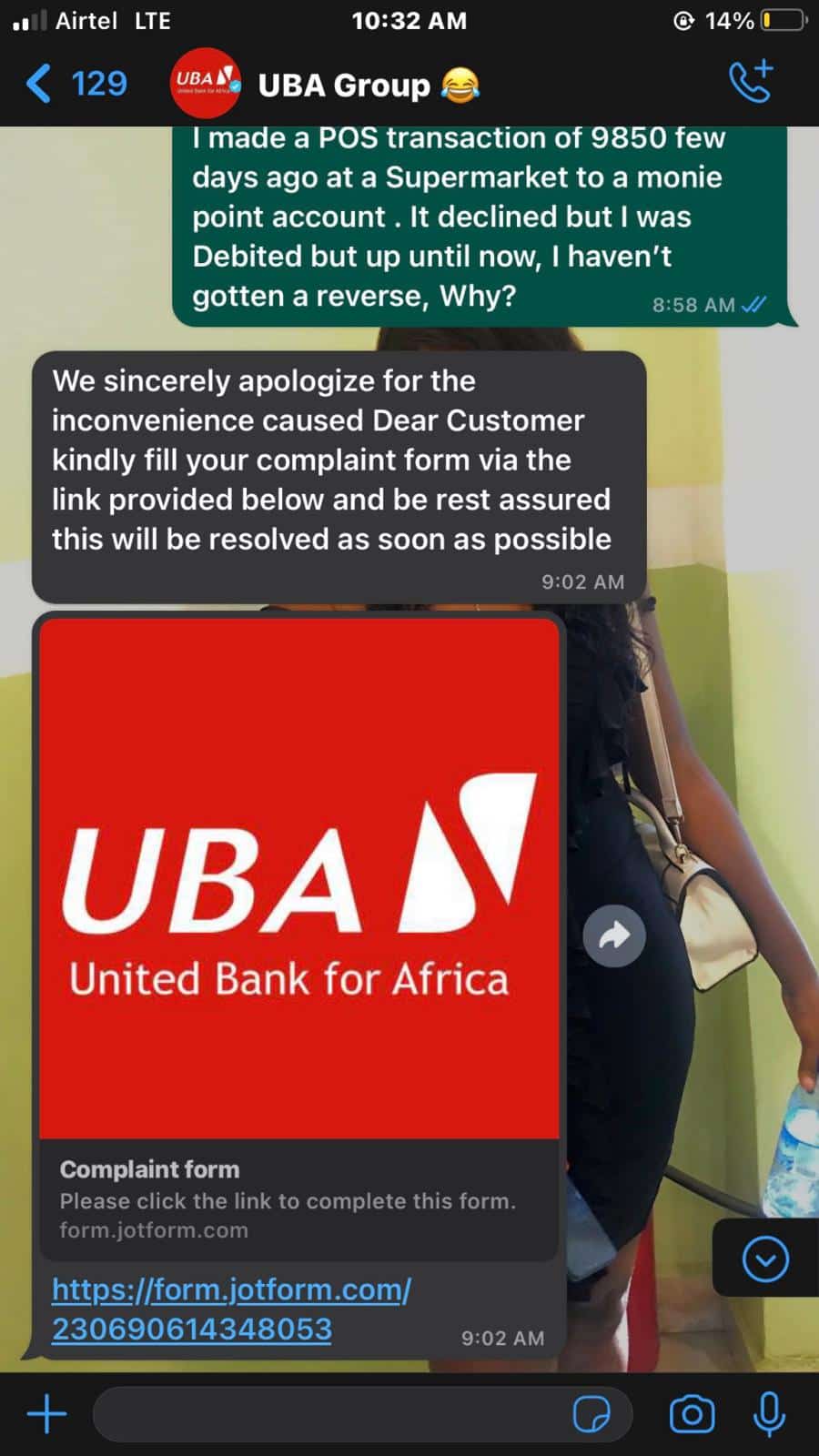So I made a complaint about how UBA Is yet to refund my money from a POS transaction that was declined ,I tagged them but one werey replied said he’s from UBA😂💔.I already knew he was a Scammer but i pretended I was clueless lol.Honestly I wasn’t prepared for that response😩🤣. pic.twitter.com/ruNukS908R