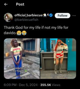 The first photo, from when she was a fan of Davido, included the caption: “When I was a fan of Davido the forgido.”