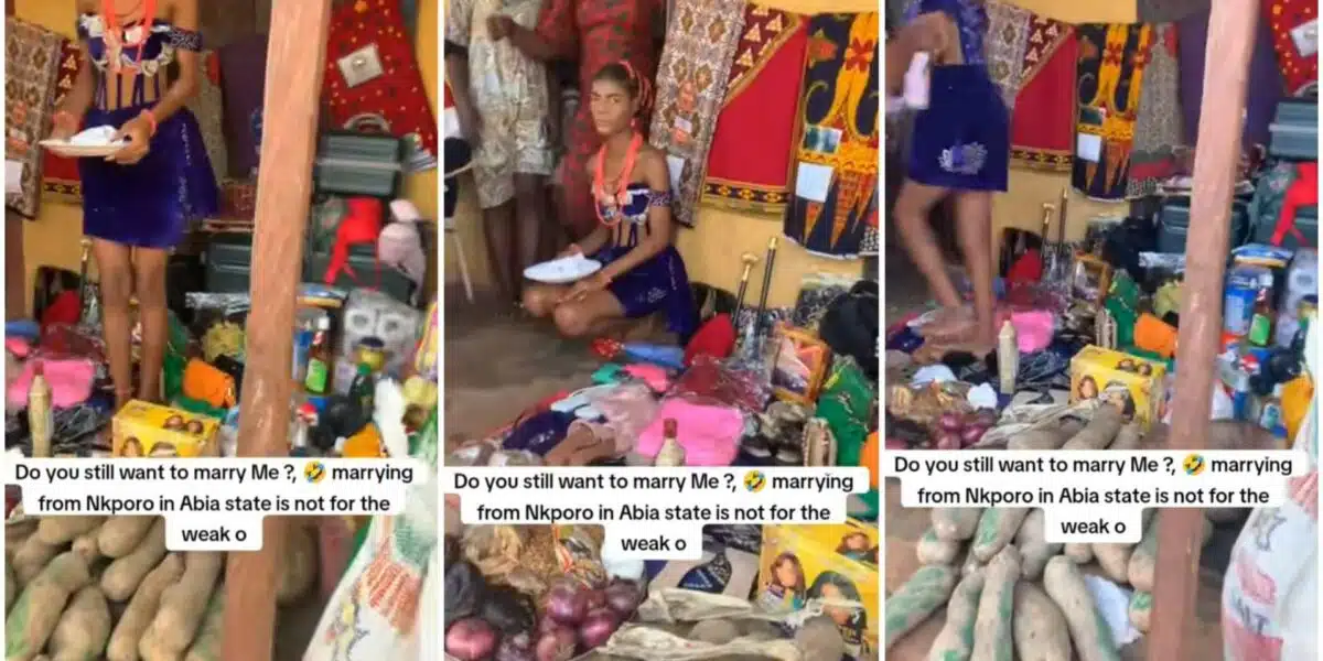 A video she shared shows the numerous items her man paid to be able to marry her.