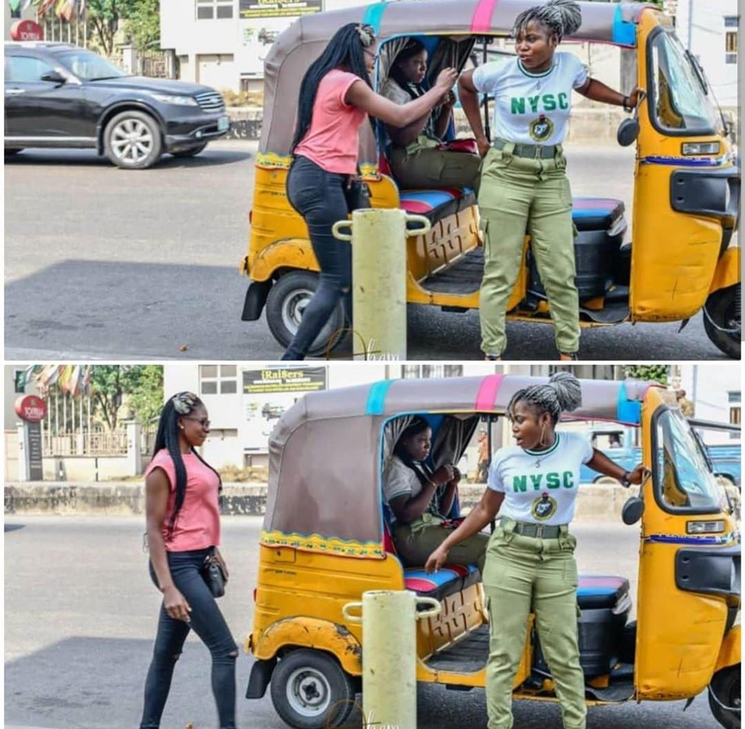 Lady storms the road with Keke napep which she purchased with NYSC allowance (Photos)
