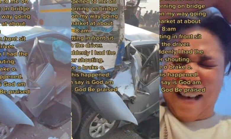 Lady tears up as she glorifies God after narrowly escaping ghastly accident (Video)