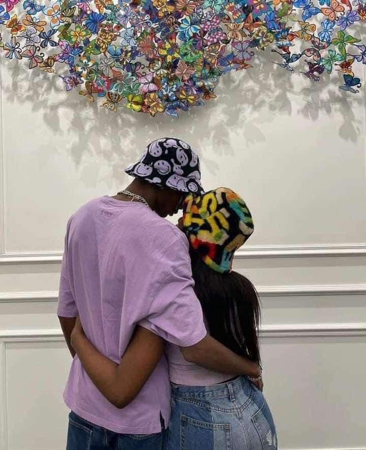 She shared pictures of themselves dressed in matching outfits and bucket hats, while they were looking affectionately at each other.