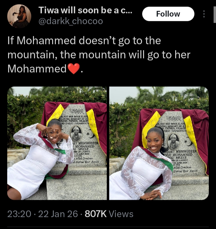 @Olasunkanmi_Gld said: “Congratulations Baby Girl. Sure Dad will be super proud of you for remembering him on your big day. May Almighty Allah continue to grant him eternal rest and grant your soul peace. So thoughtful of you.”