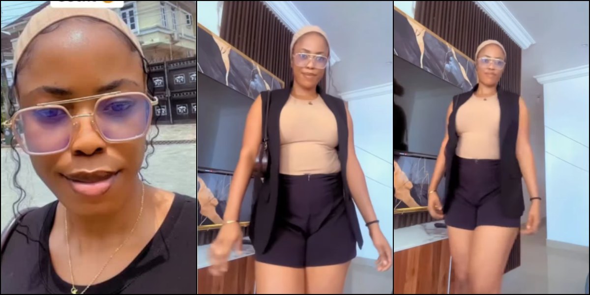 Lady expresses displeasure as she shows off the outfit that made the church usher send her out.
