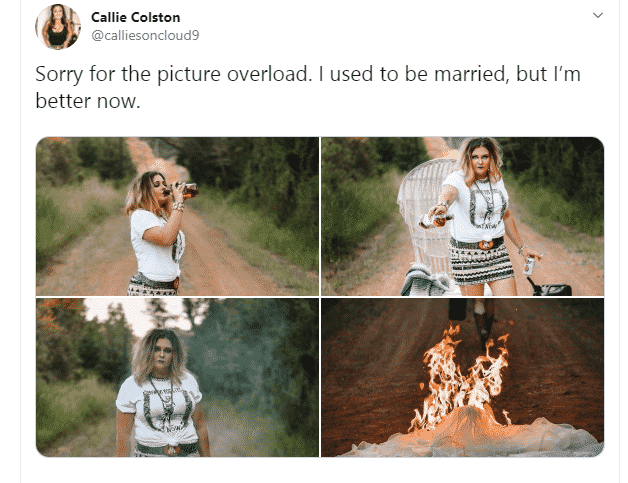 The woman, Callie Colston used pictures to announce her divorce on the platform and it has gone viral. She shared four pictures that summed up the message.