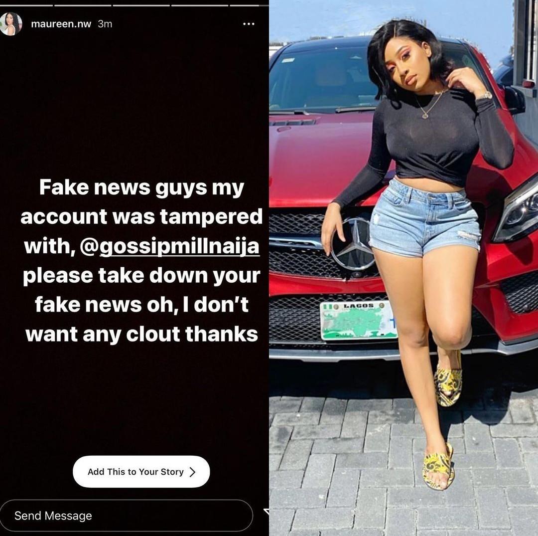 Maureen however, in her conversation with popular blog, Gossipmill has claimed that she gave her account to someone to help her fix the issues she was having, and the person tampered her account.