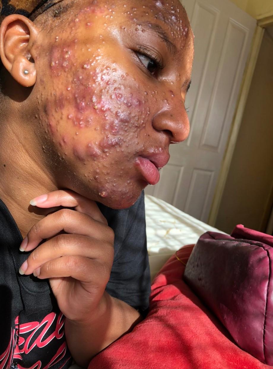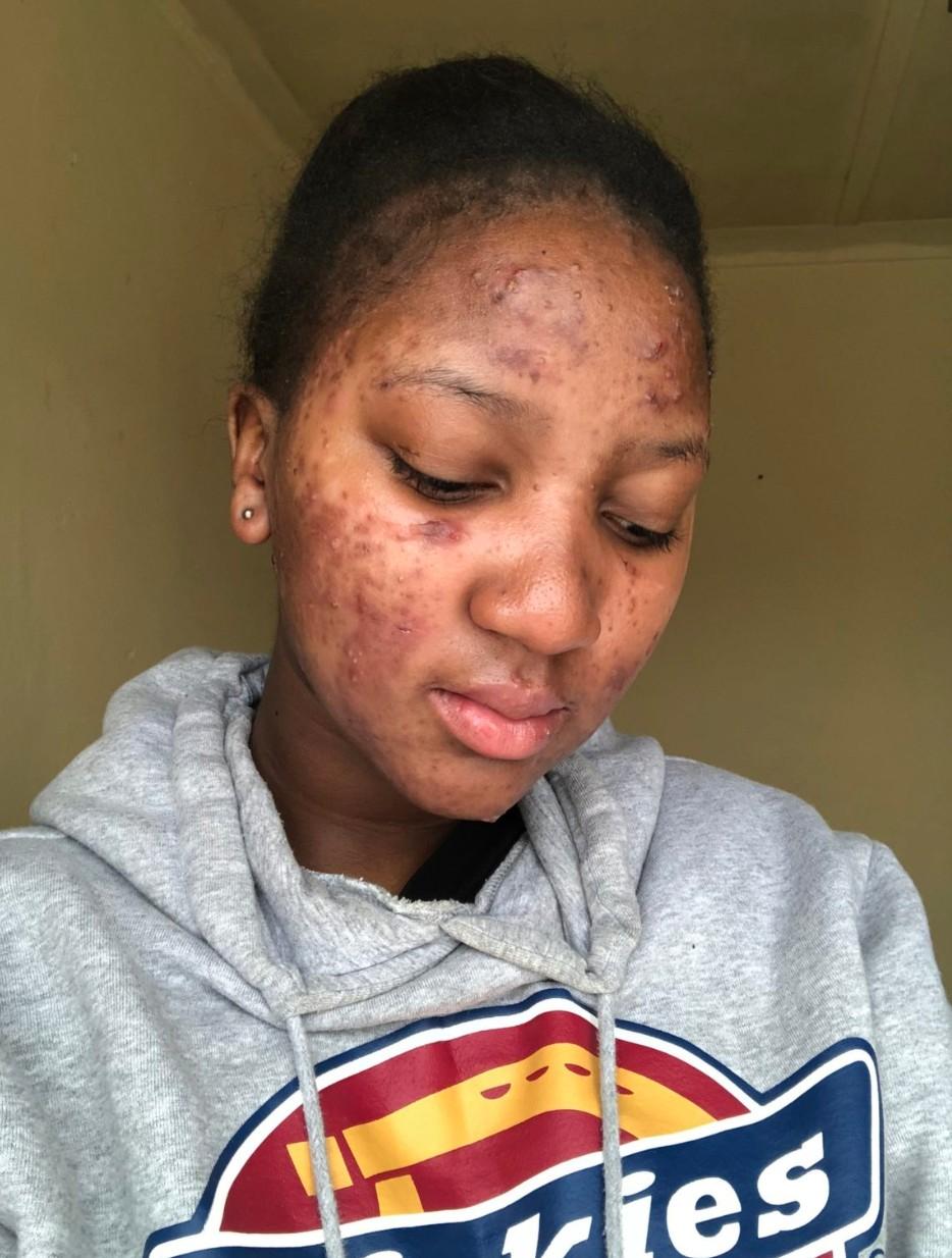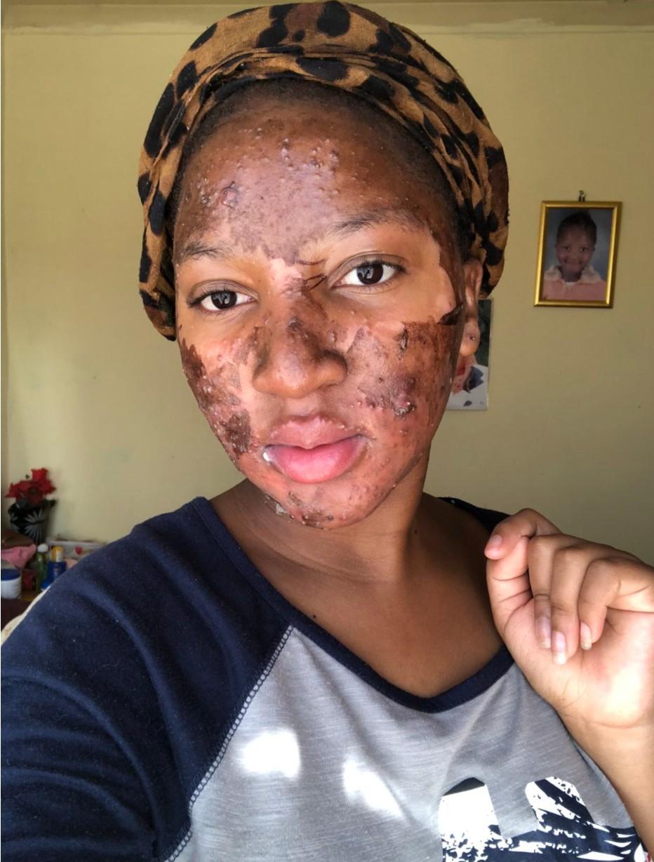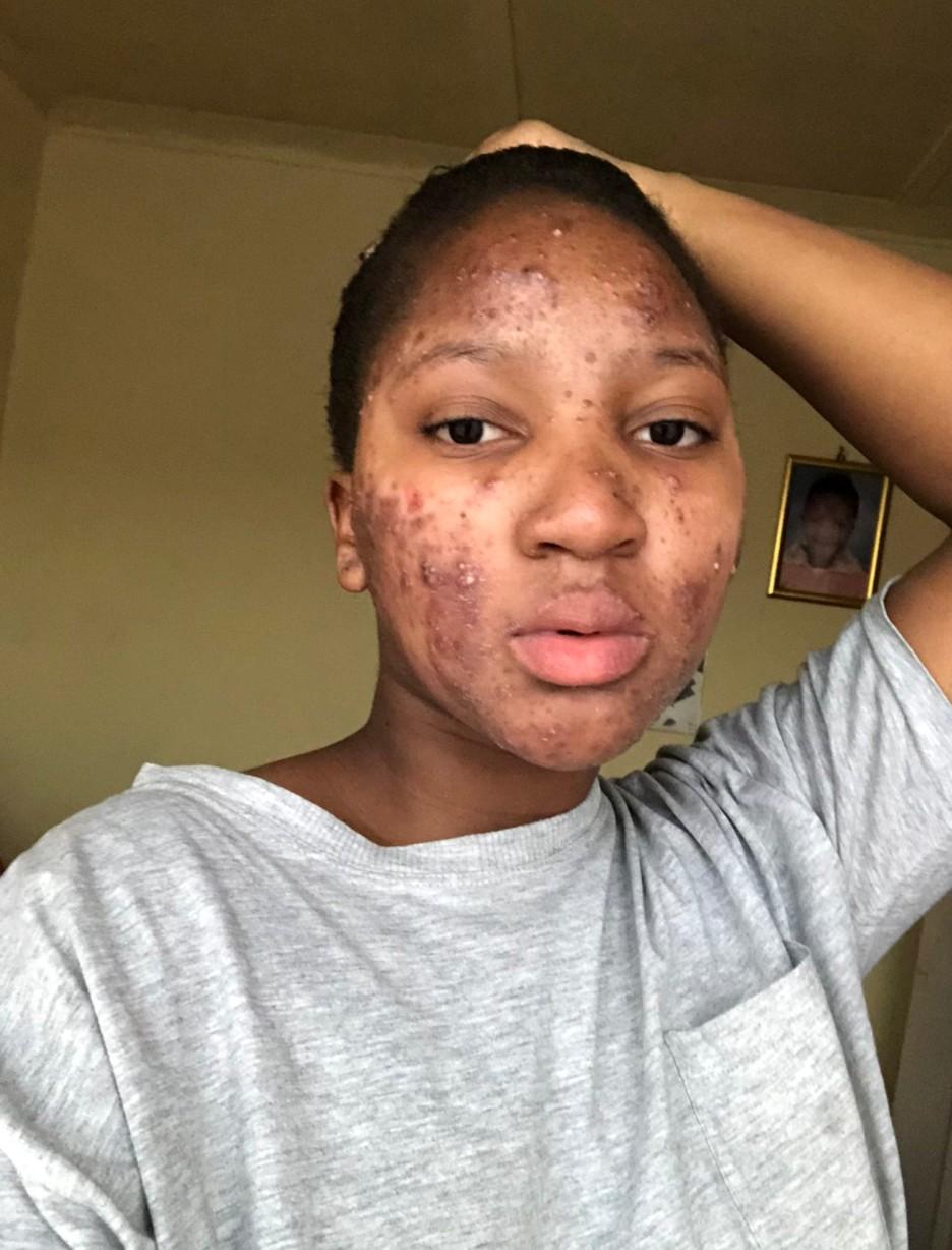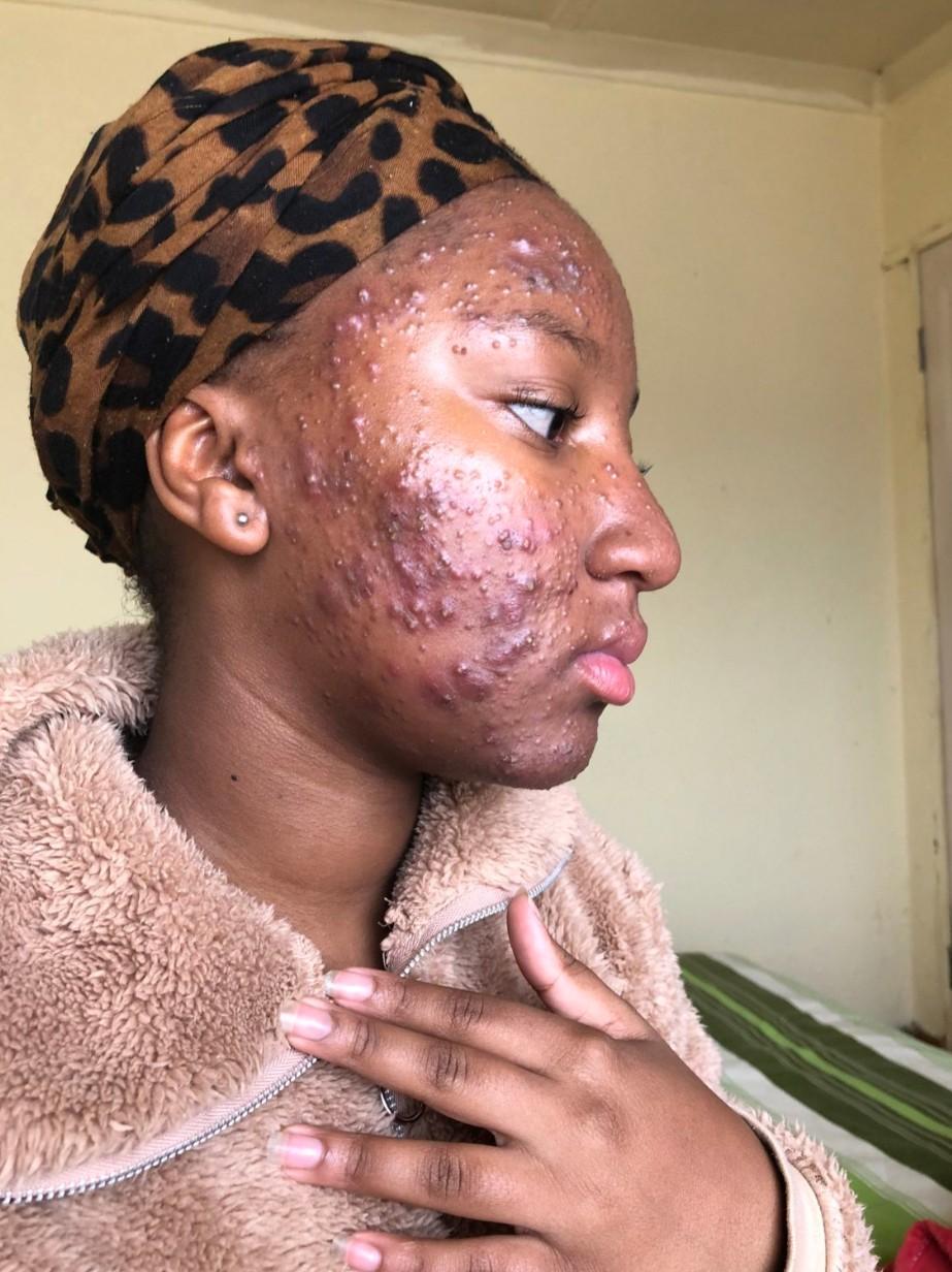 Twiter user, @MokateTshegoo has shared new photos of her epic facial transformation after she was diagnosed with facial skin disease, Acne.