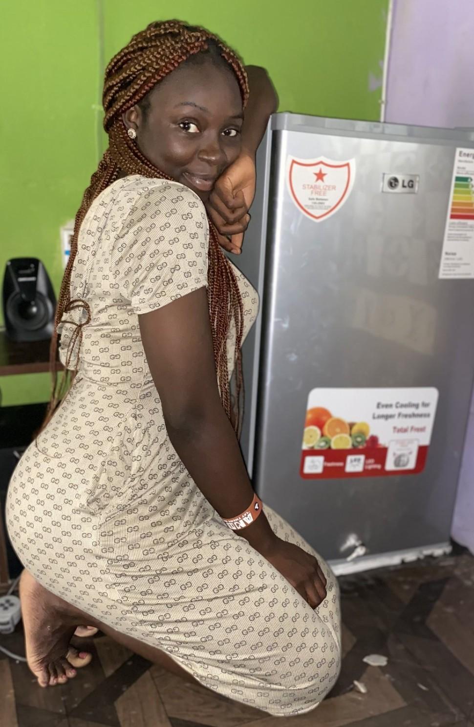 The 21-year-old lady recently went viral after she shared photo of herself squatting beside her new fridge.