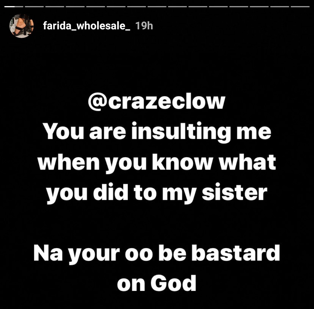A troll who earlier said that Craze Clown might lose unborn child has accused him of impregnating sister and denying responsibility of the child.