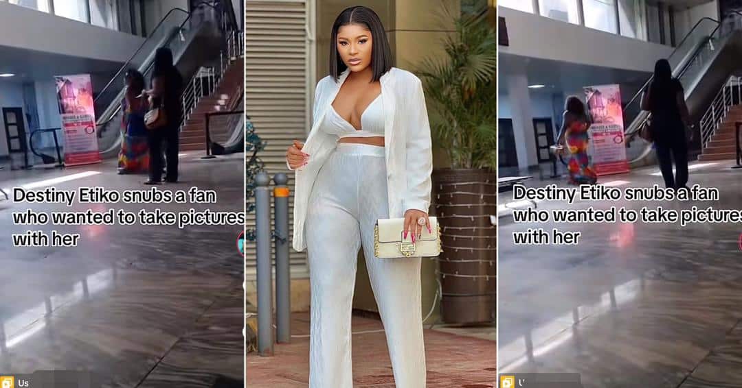 A Nigerian lady who tried to take photos with actress Destiny Etiko immediately drew back after seeing the actress’s unexpected action.