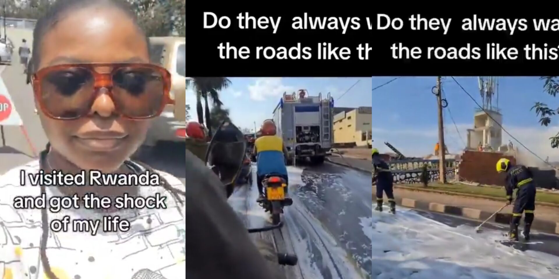 Lady who visited Rwanda in shock after seeing Rwandans wash their roads