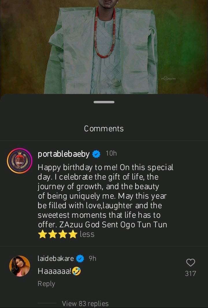 Laide Bakare dragged over her comment on Portable’s birthday post