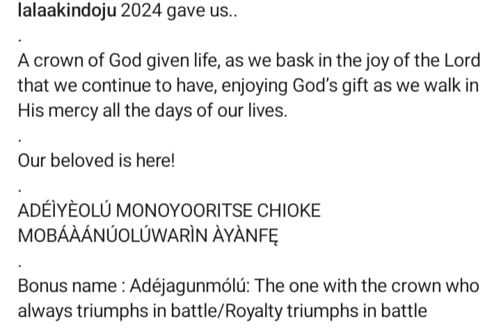 Furthermore, Lala Akindoju disclosed that her newborn is a baby boy and shared his name, along with its meaning.