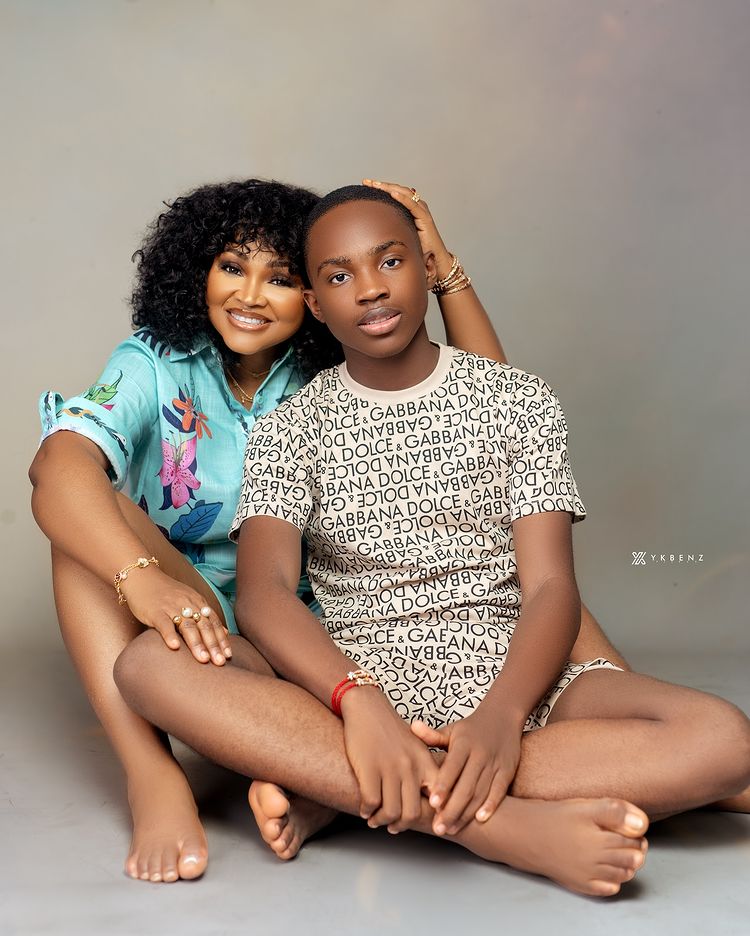 The businessman took to his Instagram page to post photos of their son, Olajuwon’s birthday, showering him with prayers as he clocks 14.