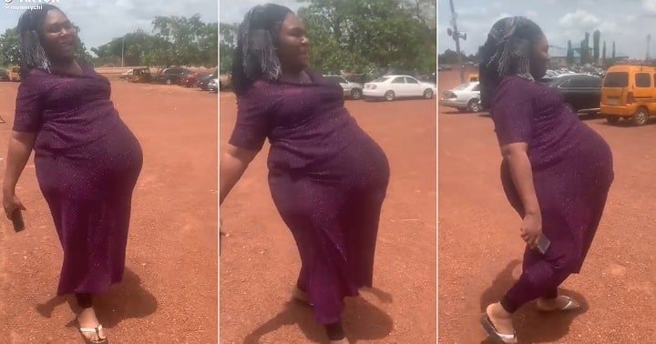 “Latest mama ejima in town” – Nigerian woman walks on the road with huge baby bump, video causes stir