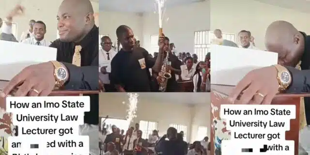 A law lecturer has been left speechless and emotional as his students surprise him with birthday celebration and gifts during his class.