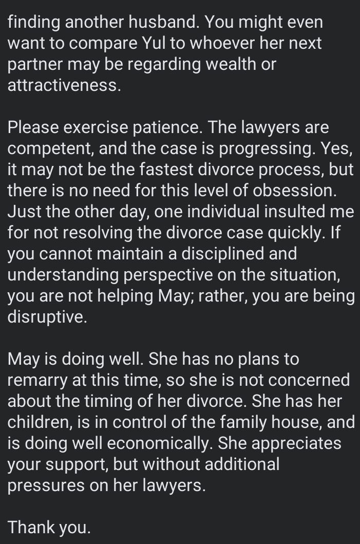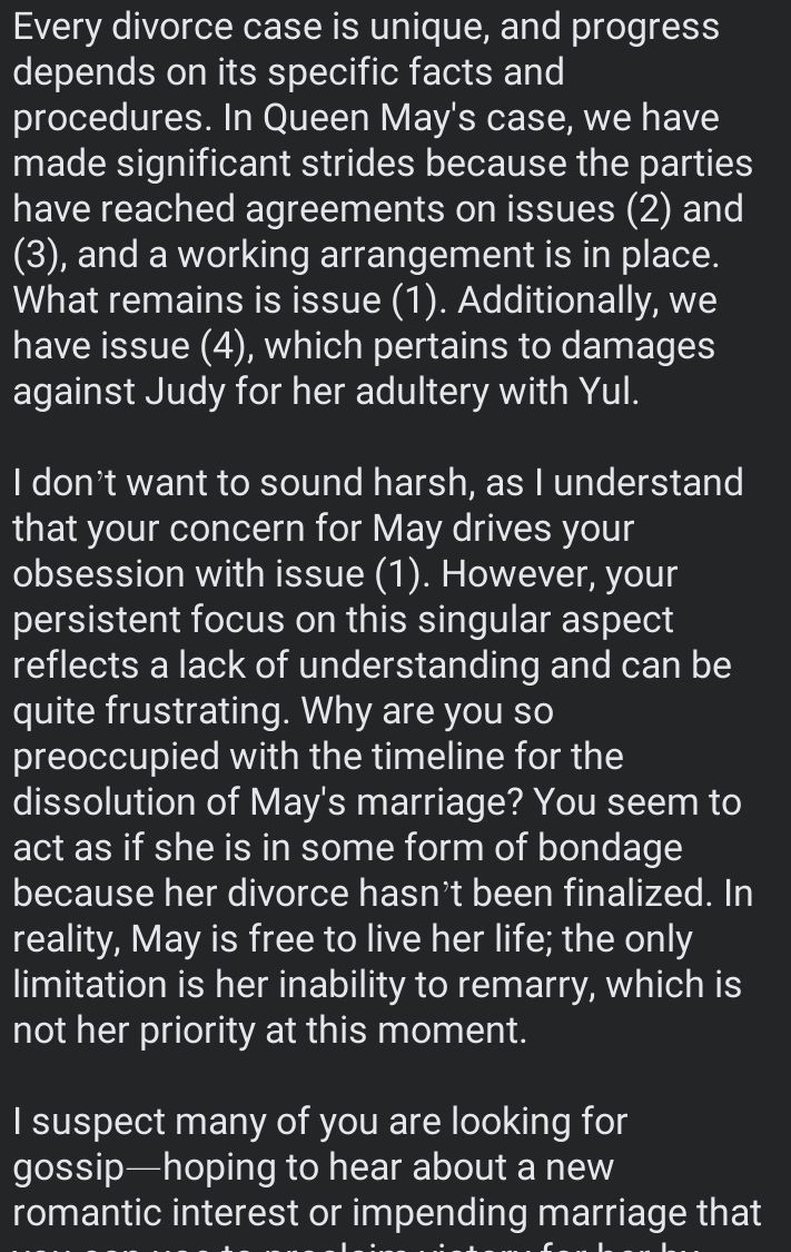 May’s lawyer revealed in a lengthy Facebook post that significant strides have been made in the divorce proceedings, with both parties reaching an agreement on key issues.
